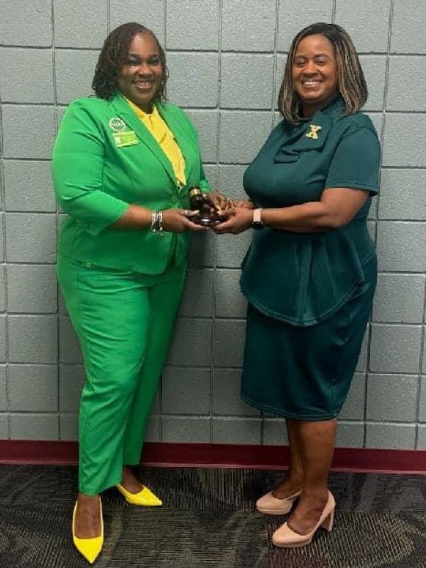 Past President Phyllis C. Goodman, passes the baton to our new President, Soror Tonia Whitley Gray.